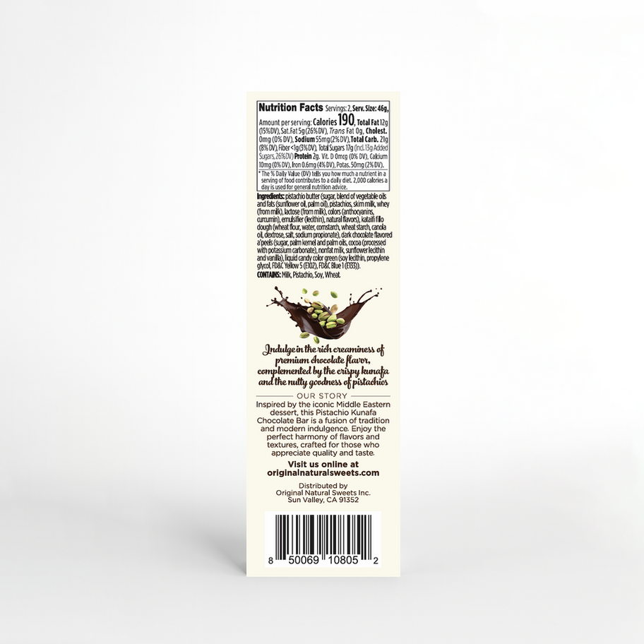 (anthocyanins, curcumin), emulsifier (lecithin), natural flavors, kataifi filo dough (wheat flour, water, cornstarch, wheat starch, canola oil, dextrose, salt, sodium